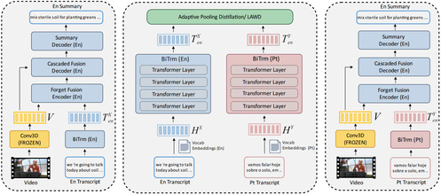 多模态摘要旨在从视觉和文本多源信息中生成摘要,有助用户在海量繁杂的多模态文档中快速定位核心内容,提升信息获取、检索、分发效率。而在多模态源文档和目标摘要语言不一致的跨语言交流场景中,由于高注释成本的跨语言样本的不足,多模态跨语言摘要模型往往性能发挥受限。针对这一问题,作者提出一种知识蒸馏引导的三阶段训练方法(图1),其通过跨语言知识蒸馏从资源丰富数据上训练的单语多模态摘要模型中转移知识,来辅助资源受限的跨语言多模态摘要模型学习。该研究还引入一种语言适应的扭曲蒸馏方法(图2),其旨在解决知识蒸馏时平行跨语言序列长度不等的挑战,不同于通过平均、池化、填充或截断等策略将不同长度的平行语言特征序列强制转为相同形状后再进行蒸馏的方式,所提出方法在保持原有语言特征形状位置不变下直接转移知识,从而避免知识蒸馏过程中因语言特征结构被破坏而带来的潜在信息损失。实验表明,所提出方法可通过从多模态同语摘要模型转移知识来为多模态跨语言摘要模型带来显著的性能改进。