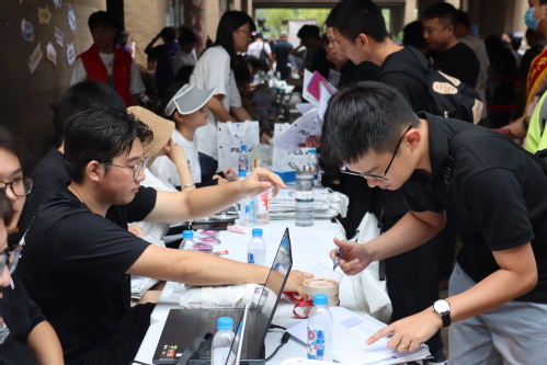 报到现场热闹非凡、人头攒动。来自全国各地的学子们同家人一起带着行李,在老师和志愿者的帮助下办理各项报到事宜。同学们纷纷表示,“学校很大气!很漂亮!”“学长学姐们也都特别好!”“期待未来在天工的生活!”“学校全面周到的工作安排,让初来乍到的我感受到一份安心与温暖。未来的日子里,我还要继续努力,不辜负家人和学校的期望。”