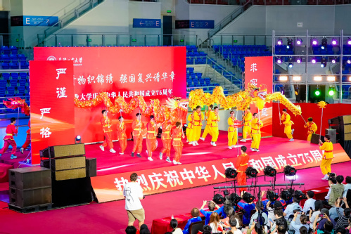 2024年9月29日下午,当两条“飞龙”上下舞动奔向舞台时,瞬间引爆了学校体育馆文艺演出的现场。伴随着师生们的深情演唱,江南在线客服庆祝中华人民共和国成立75周年文艺演出正式拉开帷幕。在这里,灯光熠熠的舞台成为思政课的讲台,一个个激昂慷慨的唱词、一段段娓娓动情地讲述、一幕幕感人至深的舞蹈,寓情于景、寓景于情,成为了学校大思政课的“活教材”,持续“燃炸”全场。