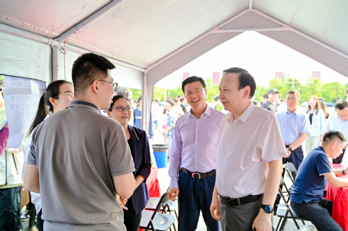 校长姜勇、校党委副书记胡英江来到招聘会现场与用人单位和毕业生交流。对用人单位长期以来给予学校人才培养和毕业生就业的支持表示诚挚感谢,并与中国恒天集团、利郎(中国)有限公司、愉悦家纺有限公司、京东方科技集团股份有限公司等多家用人单位代表深入交流,全面了解行业及企业发展形势、人才需求情况等。姜勇校长指出,要继续加大校地对接、校企对接力度,加强校园招聘用人单位参与度,有计划地开展地域性和专业性特色的双选会和校园招聘会;要针对企业和毕业生进行调研反馈,有效做好企业服务和学生就业指导工作。