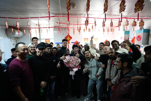 在留学生公寓,沈江书记与在校留学生亲切交流,并送上新春祝福。师生挥毫写下一个个或飘逸洒脱、或刚劲有力的“福”字,将对新年的美好憧憬与祝福融入一笔一划中。随后,沈江书记与留学生一起包饺子,大家分工合作,一个个饺子包得有模有样,现场充满了欢声笑语,热气腾腾的饺子让大家赞不绝口。留学生们向沈江书记送上鲜花并合影留念。