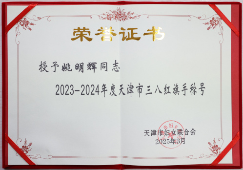 近日,天津妇联发布了2023-2024年度天津市三八红旗手标兵、天津市三八红旗手(集体)名单,我校航空航天学院常务副院长姚明辉教授被授予天津市三八红旗手荣誉称号。