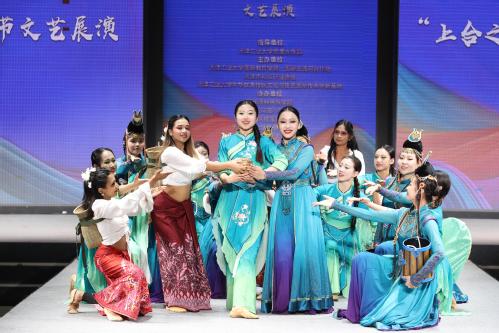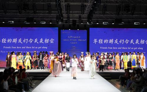 5月23日下午,“上合之约·津彩国际”华服文化节在我校艺术学院动态展示厅盛装启幕,本次文化节由我校和天津市礼仪行业协会共同主办,呼和浩特民族学院、天津市南开区五马路小学、荣程集团协办。现场衣袂翩跹,来自中国、俄罗斯、印度、哈萨克斯坦等30多个国家的200余名师生欢聚一堂,以舞传情、以歌为媒、以衣载道,共绘文化交融新画卷。